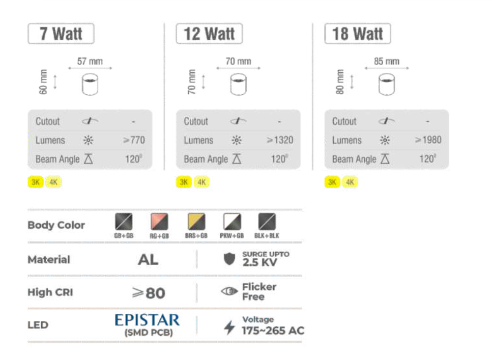Available in 7w, 12w and 18watts. Price indicated is for 7watts model.