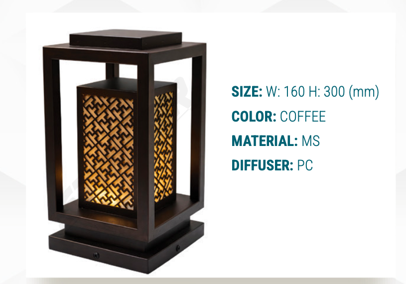 It is a medium size gatelight with 30cm height and 16cm width. Built with E27 holder which can fit in led bulbs from upto 14watts.
