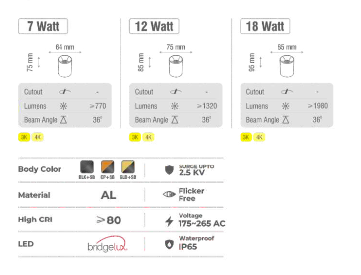 Available in 7w, 12w and 18watts. Price indicated is for 7watts model.